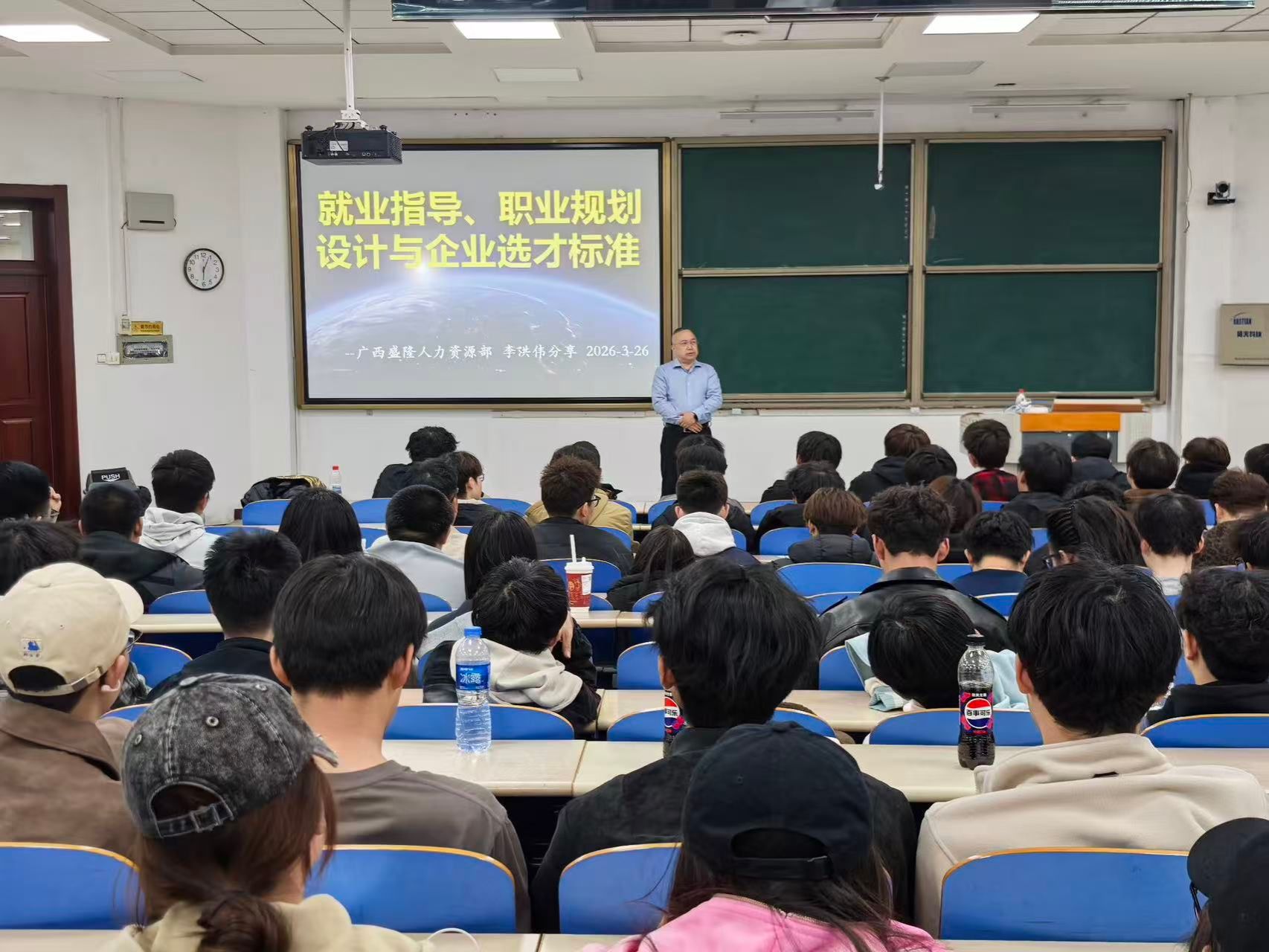 为落实立德树人根本任务,赓续雷锋精神育人底色,助力学院学生明晰发展方向,机械工程学院特色育人品牌活动“拾光·成长计划”第一期在3月26日顺利开讲。本次讲座特邀广西盛隆冶金有限公司人力资源副总经理李洪伟担任主讲嘉宾,聚焦职业规划与行业前沿展开分享,激励青年学子传承匠心、立志报国,在服务国家战略与地方发展中实现人生价值。学院党委副书记马喜龙、辅导员纪守峰、孟祥瑞参加本次活动。会议由机械工程学院团委书记赵梦茁主持。